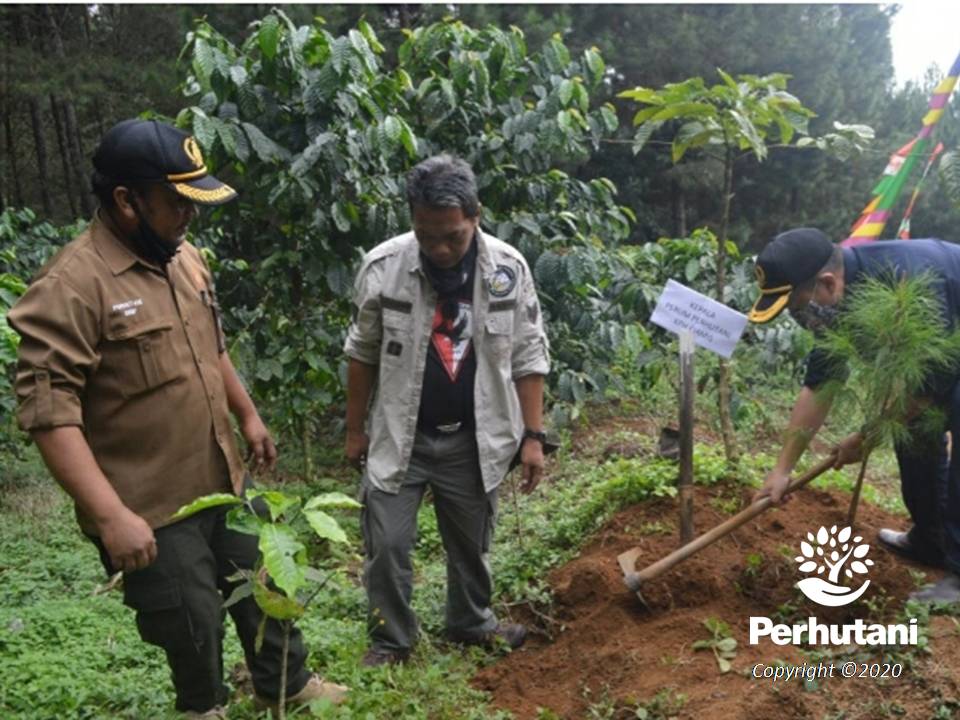 CIAMIS, PERHUTANI (11/12/2020) | Dalam rangka Hari Menanam Pohon Indonesia (HMPI), Perhutani Kesatuan Pemangkuan Hutan (KPH) Ciamis dan Forum Raksa Giri Sawala (FRGS) melakukan inisiasi untuk melaksanakan kegiatan aksi konservasi alam dengan menanam 4.000 pohon di Gunung Sawal tepatnya di Blok Hutan Produksi Awilega Resort Pemangkuan Hutan (RPH) Kawali, Bagian Kesatuan Pemangkuan Hutan (BKPH) Ciamis, Kamis (10/12).