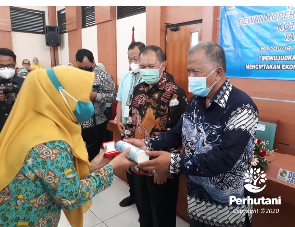 BANDUNG UTARA, PERHUTANI (16/11/2020) | Primer Koperasi Karyawan (Primkopkar) Perhutani Kesatuan Pemangkuan Hutan (KPH) Bandung Utara kembali berprestasi usai Ketuanya Reni Sureni meraih penghargaan lencana koperasi dari Dewan Koperasi Indonesia Daerah (Dekopinda) Kota Bandung. Penghargaan ini secara simbolis diserahkan langsung oleh Wali Kota Bandung Oded M. Danial didampingi Ketua Dekopinda Kota Bandung Usep Sumarno dan Dekopinwil Jawa Barat Mustopa Jamaludin pada saat Musyawarah Daerah (Musda) Dekopinda Kota Bandung di kantor Dekopinwil Jabar, Minggu (15/7).