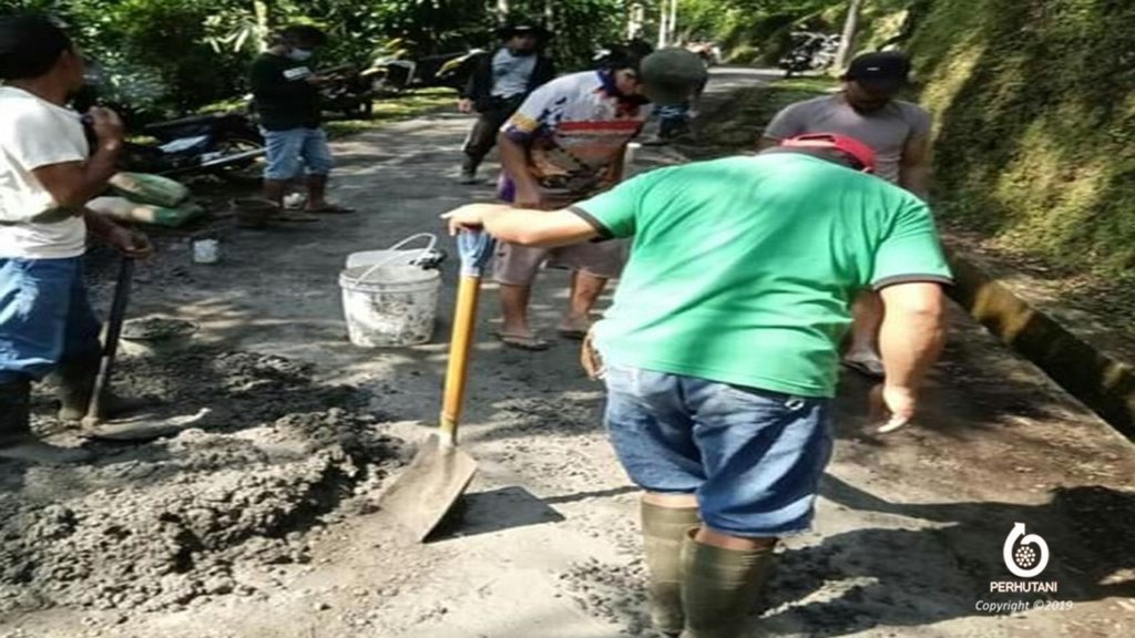 BANYUMAS TIMUR, PERHUTANI (30/3/2020) | Lembaga Masyarakat Desa Hutan (LMDH) Gempita, Desa Ketenger, Kecamatan Baturraden, Kabupaten Banyumas binaan Perhutani Kesatuan Pemangkuan Hutan (KPH) Banyumas Timur menyerahkan bantuan material untuk perbaikan jalan akses menuju Dusun Kalipagu Desa Ketenger, Jum’at (27/03).