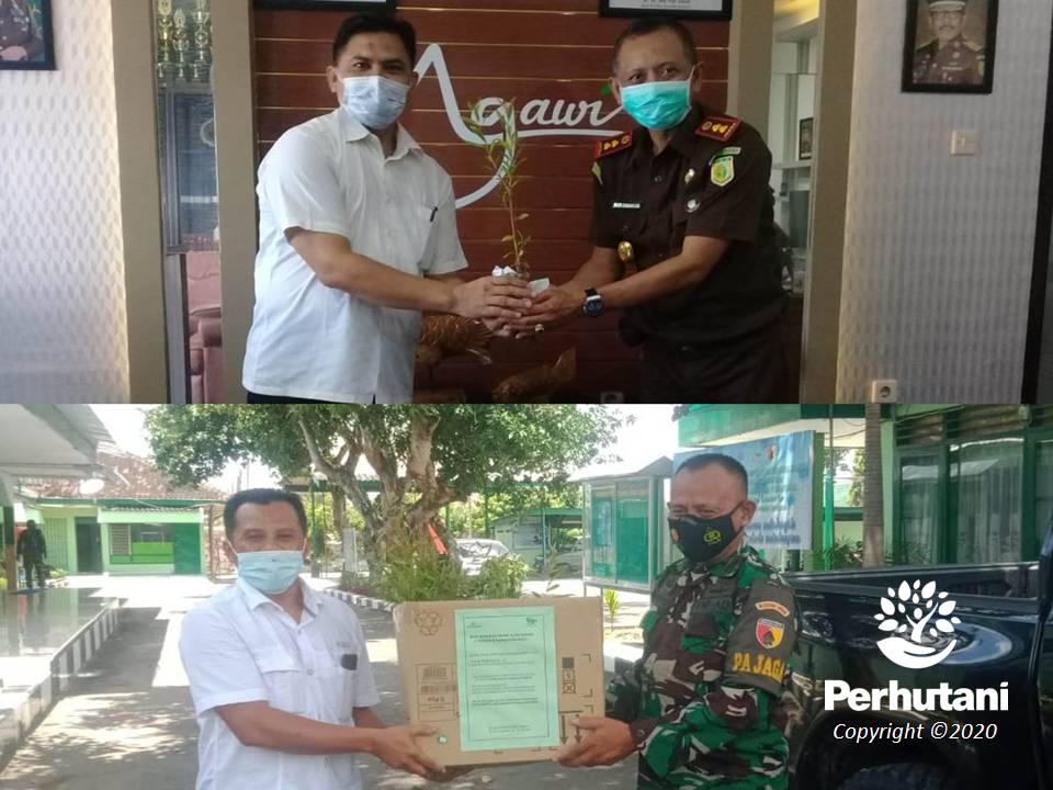 NGAWI, PERHUTANI (31/3/2021) | Memperingati Hari Jadi Perhutani ke-60, Perhutani Kesatuan Pemangkuan Hutan (KPH) Ngawi terus mengkampanyekan penanaman pohon dengan membagikan ratusan bibit kayu putih kepada jajaran Forum Koordinasi Pimpinan Daerah (Fokopimda) Kabupaten Ngawi, Rabu (31/3).