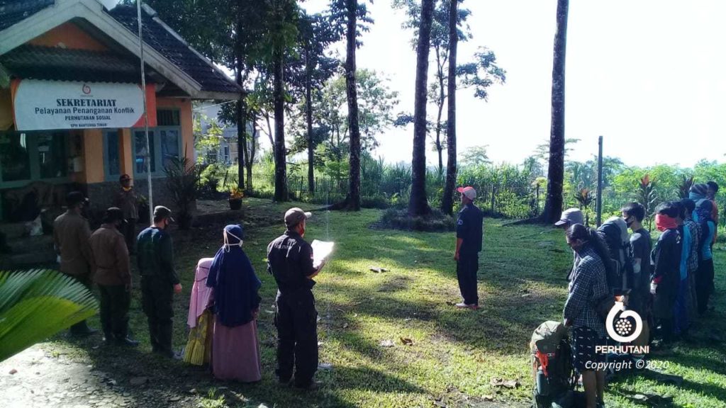 BANYUMAS TIMUR, PERHUTANI (29/10/2020) | Bertempat di halaman kantor Bagian Kesatuan Pemangkuan Hutan (BKPH) Gunung Slamet Barat, Kecamatan Baturraden, Kabupaten Banyumas, Kepala BKPH Gunung Slamet Barat dan Kelompok Pecinta Alam Raden Pala Baturraden gelar upacara dalam rangka memperingati hari Sumpah Pemuda yang ke-92, Rabu (28/10).