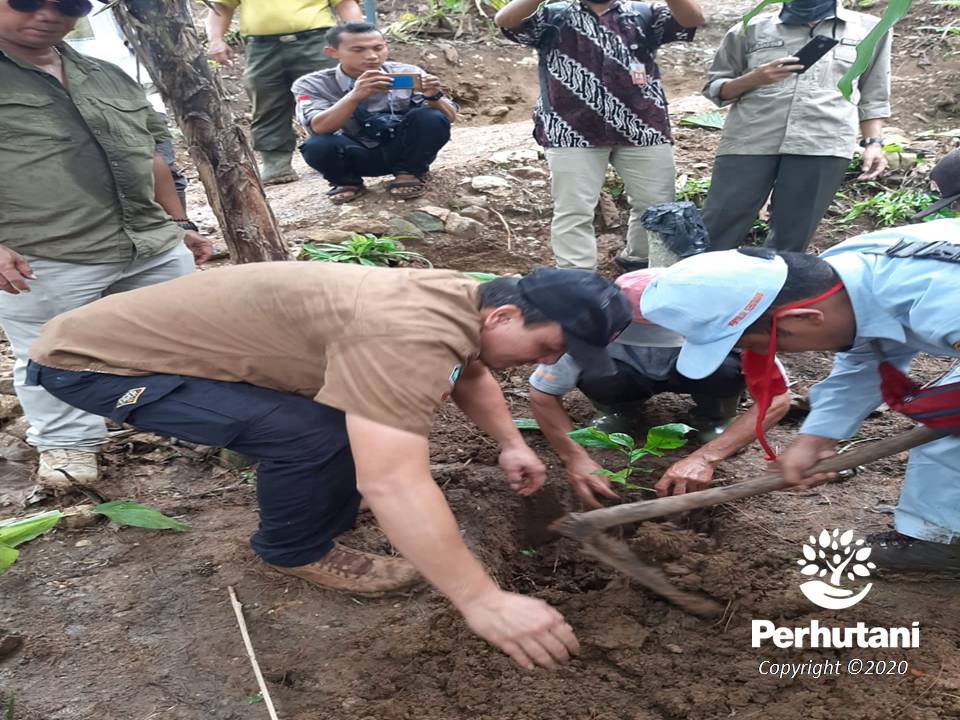 BANYUMAS BARAT, PERHUTANI (13/11/2020) | Kesatuan Pemangkuan Hutan (KPH) Banyumas Barat mengadakan gerakan tanam pohon bersama antara Perhutani dengan Kelompok Usaha Perhutanan Sosial (KUPS) bertempat di desa Karangkemojing, Kecamatan Gumelar, Kabupaten Banyumas pada Kamis (12/11).