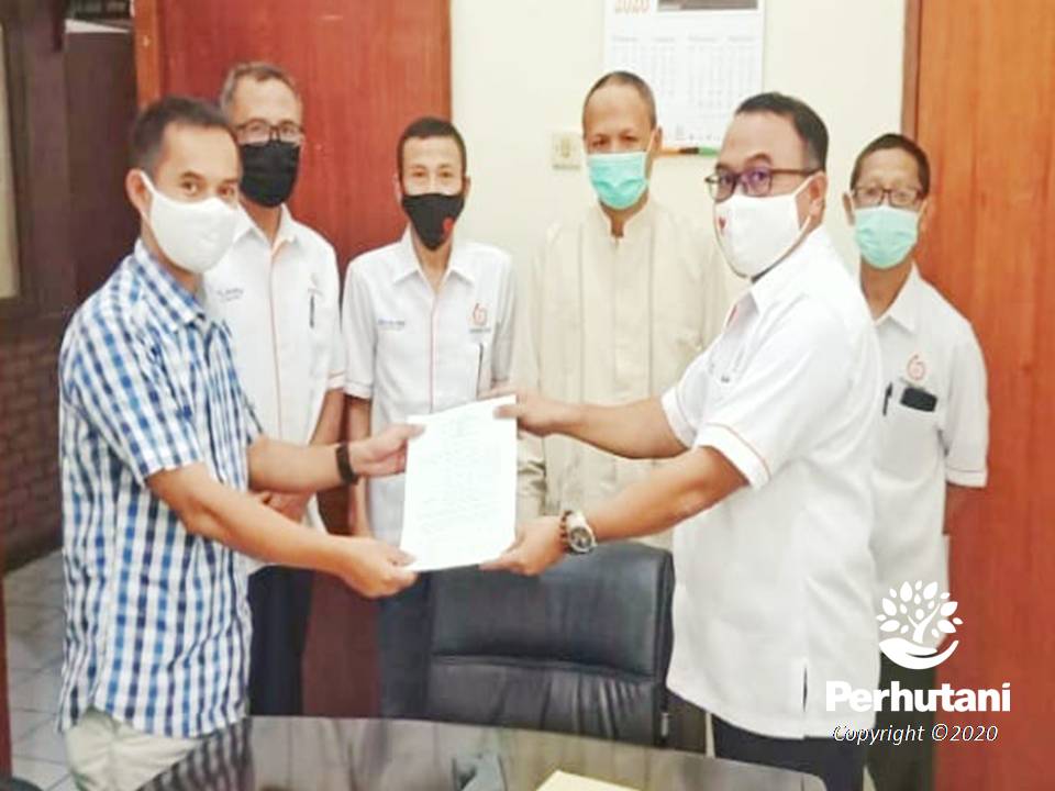 BOGOR, PERHUTANI (04/11/2020) | Perhutani Kesatuan Pemangkuan Hutan (KPH) Bogor melakukan penandatanganan Naskah Kesepakatan Kerjasama (NKK) Kemitraan Kehutanan Penggunaan Alur dalam kawasan hutan seluas 1,66 ha, dengan PT. Yafo Makmur Perkasa. Penandatangan dilaksanakan di ruang rapat kantor KPH Bogor, Rabu (11/04).