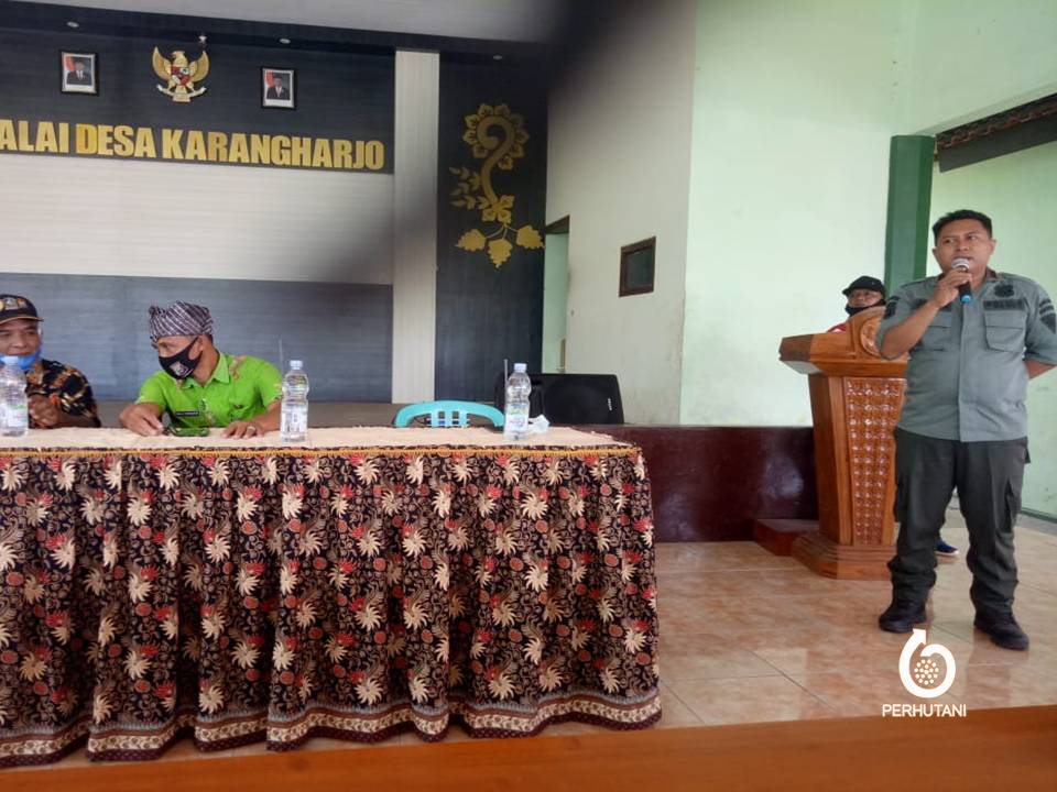 BANYUWANGI SELATAN, PERHUTANI (24/10/2020) | Perhutani Kesatuan Pemangkuan Hutan (KPH) Banyuwangi Selatan bersama Forum Koordinasi Pimpinan Kecamatan (Forkopimcam) Glenmore menghadiri pemilihan Ketua Lembaga Masyarakat Desa Hutan (LMDH) Wana Sejati desa Karangharjo Kecamatan Glenmore Banyuwangi, bertempat di pendopo Desa Karangharjo pada Jumat (23/10).