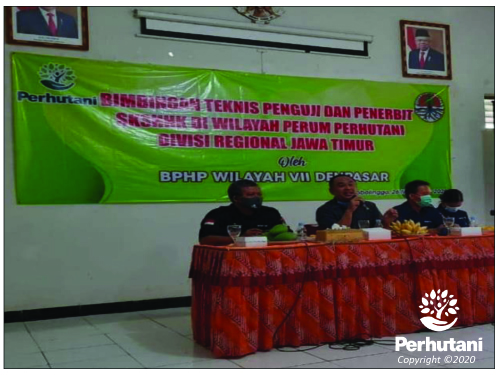 PROBOLINGGO, PERHUTANI (05/12/2020) | Perhutani Kesatuan Pemangkuan Hutan (KPH) Probolinggo fasilitasi Balai Pengelolaan Hutan Produksi (BPHP) Wilayah VII Denpasar mengadakan Bimbingan Teknis (Bimtek) Penguji dan Penerbit Surat Keterangan Sahnya Hasil Hutan Kayu (SKSHHK) di Wilayah Perum Perhutani Divisi Regional Jawa Timur bertempat di aula kantor KPH Probolinggo, Rabu (2/12).