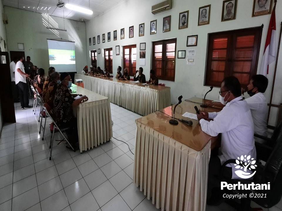 SURAKARTA, PERHUTANI (01/04/2021) | Perhutani Kesatuan Pemangkuan Hutan (KPH) Surakarta melaksanakan sosialisasi tindak lanjut program Pengakuan dan Perlindungan Kemitraan Kehutanan (Kulin KK) dan Agroforestry kepada Lembaga Masyarakat Desa Hutan (LMDH) di wilayah Bagian Kesatuan Pemangkuan Hutan (BKPH) Tangen bertempat di ruang rapat KPH Surakarta, Rabu (31/03).