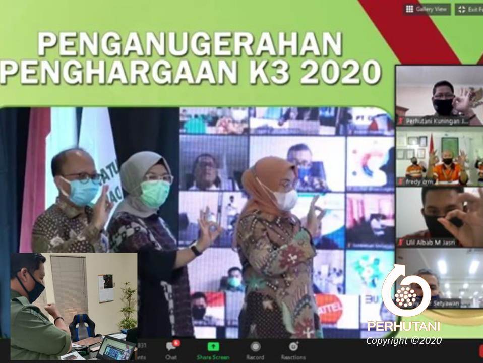 KUNINGAN, PERHUTANI (10/10/2020) | Perhutani Kesatuan Pemangkuan Hutan (KPH) Kuningan kembali mendapatkan anugerah penghargaan Keselamatan dan Kesehatan Kerja (K3) tingkat Nasional tahun 2020 kategori ZERO ACCIDENT bersama perusahaan lainnya. Penerimaan penghargaan secara simbolis diwakili oleh PT. Saguling Indonesia mewakili 1.237 perusahaan se-Indonesia bertempat di Gedung Serbaguna Kemnaker Jakarta, Kamis (08/10).