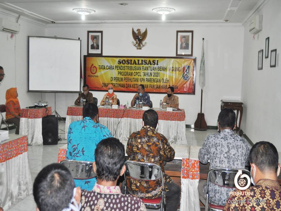 Administratur KPH Parengan Setyo Salindra Putri mengatakan, bahwa pertemuan tersebut untuk membahas rencana sosialisasi tata cara pendistribusian bantuan benih jagung sesuai proses Calon Petani Calon Lahan (CPCL) Tahun 2020. Menurutnya KPH Parengan untuk program ketahanan pangan tahun 2020 mengusulkan lahan seluas 2.450 hektar untuk 38 LMDH, “Namum yang mendapat persetujuan 32 LMDH dengan luas 2,040 hektar dengan benih Jagung Hibrida Varietas Bisi 18,” ujarnya.