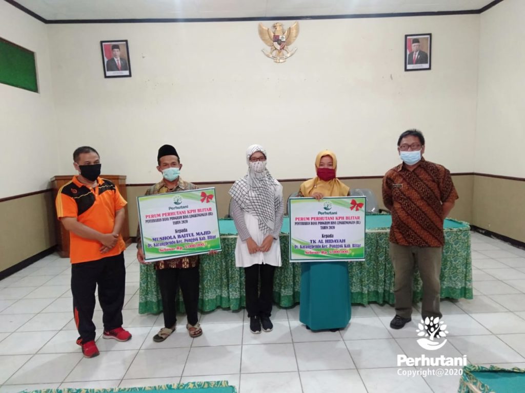 BLITAR, PERHUTANI (4/12/2020) | Perhutani Kesatuan Pemangkuan Hutan (KPH) Blitar memberikan bantuan dana untuk perbaikan Mushola Baitul Majid dan Sekolah TK Al-Hidayah di Desa Karangbendo Kecamatan Ponggok Kabupaten Blitar, pada Jum’at (4/12).