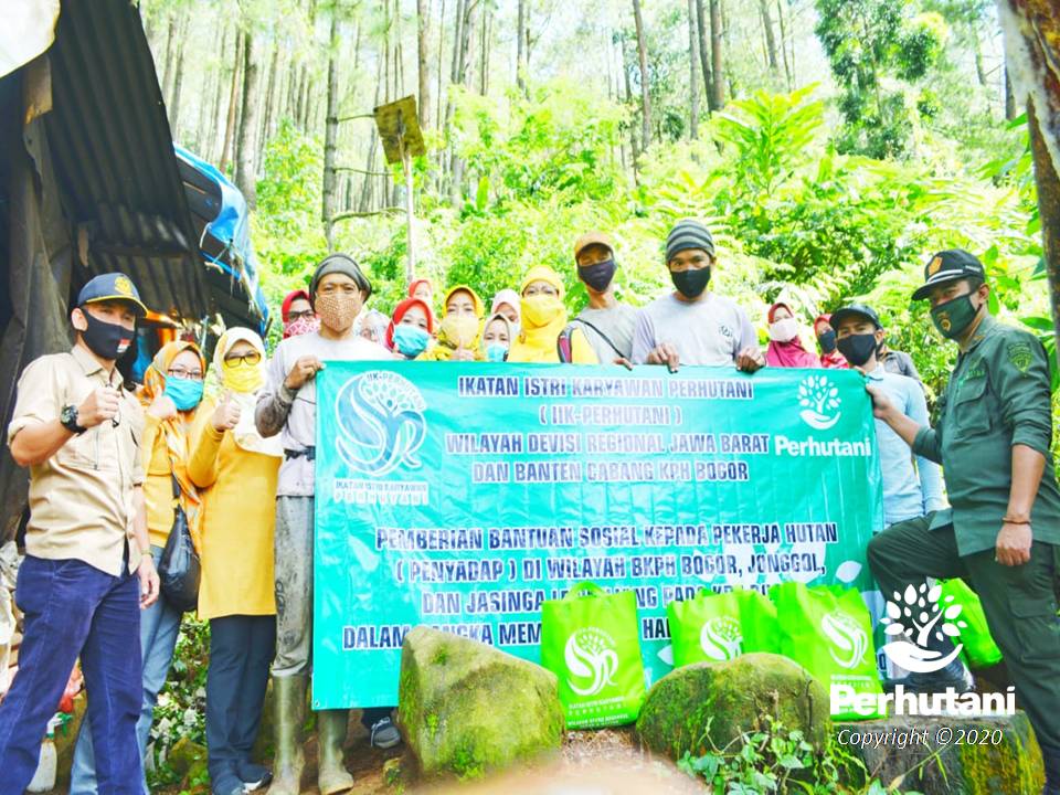 Penyerahan sembako dilakukan secara simbolis oleh Ketua IIKP Cabang KPH Bogor, Indriyati Ahmad Rusliadi. Pembagian paket sembako ini dilakukan juga di wilayah lain yakni BKPH Jonggol, dan BKPH Jasinga Leuwiliang.