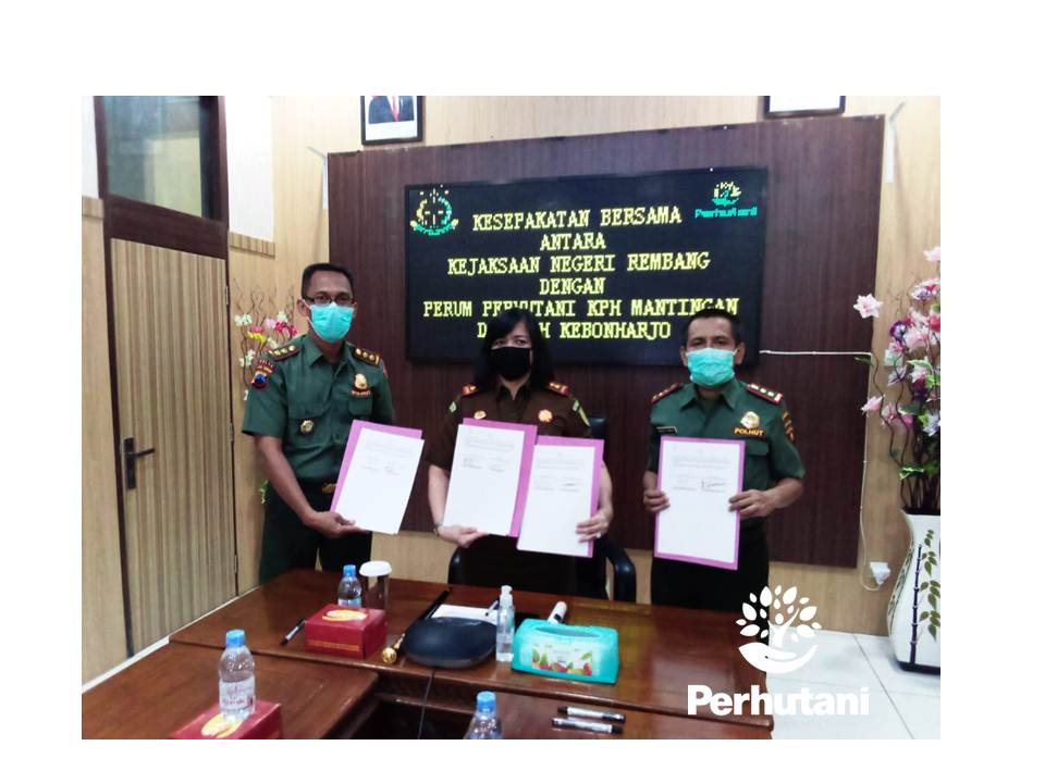 Hadir dalam penandatanganan MoU, Administratur KPH Mantingan Widodo Budi Santoso, Kepala Kejaksaan Negeri Rembang Anita Asterida, Kepala Seksi Perdata dan Penuntutan Dwi Ciptotunggal, Administratur KPH Kebonharjo Joko Santoso, beserta jajaran masing-masing.