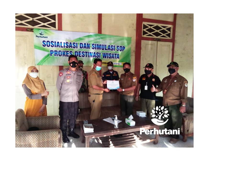 MANTINGAN, PERHUTANI (12/04/2021) | Tim Gugus Covid-19 Kecamatan Bulu memberikan rekomendasi kepada Wana Wisata Kartini Mantingan untuk dapat dibuka kembali usai Kesatuan Pemangkuan Hutan (KPH) Mantingan melakukan simulasi protokol kesehatan di sana, Senin (12/04).