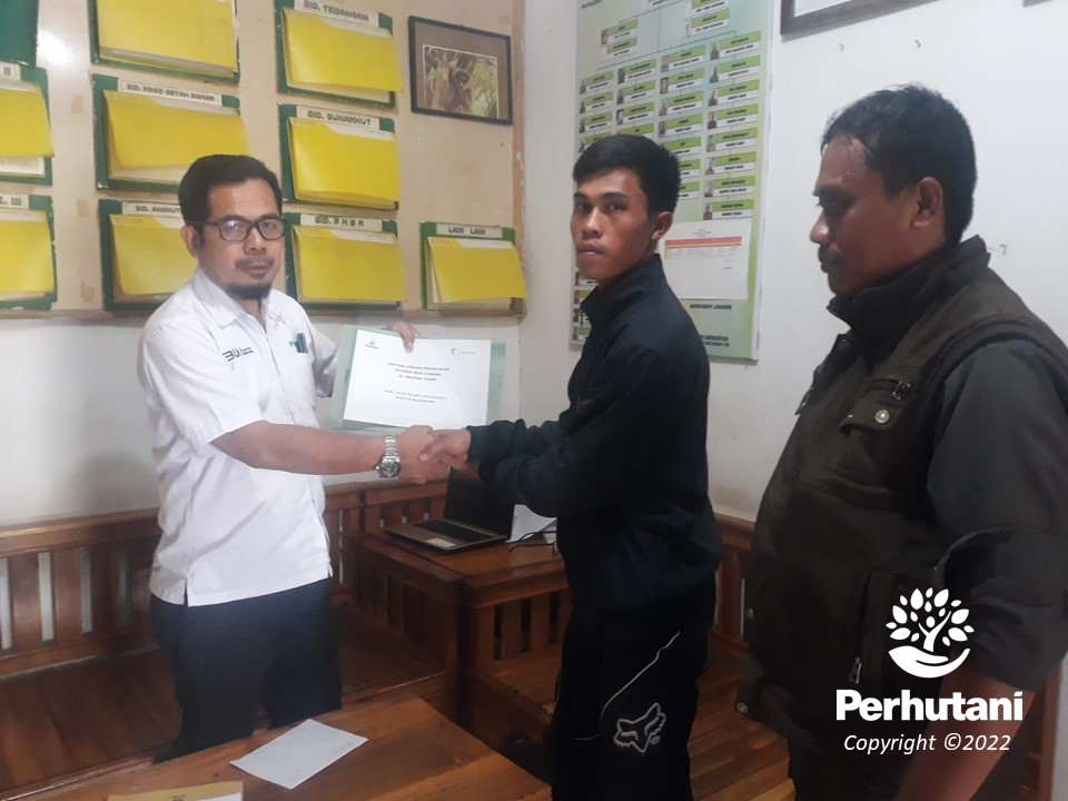 Penyerahan santunan tersebut diberikan langsung oleh Administratur KPH Sukabumi Asep Setiawan kepada Ade Kurniawan yang merupakan anak dari Alm. Tajudin dan disaksikan oleh Kepala Sub Seksi Sumber Daya Manusia dan Umum Iis Jamilah beserta jajaran, Asisten Perhutani (Asper) BKPH Lengkong Nanang Hermansyah beserta jajaran serta keluarga ahli waris.