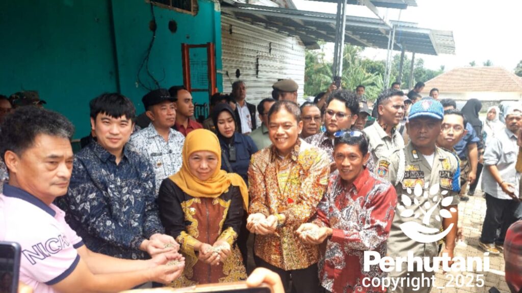 BONDOWOSO, PERHUTANI (01/11/2025) | Administratur Perhutani Kesatuan Pemangkuan Hutan (KPH) Bondowoso, Misbakhul Munir bersama Bupati Bondowoso Abdul Hamid Wahid mendampingi Gubernur Jawa Timur, Khofifah Indar Parawansa melepas ekspor kopi spesialti unggulan Java Ijen Raung ke Taiwan.yang berlangsung di Desa Rejoagung, Kecamatan Sumberwringin, Kabupaten Bondowoso, pada Sabtu (1/11).