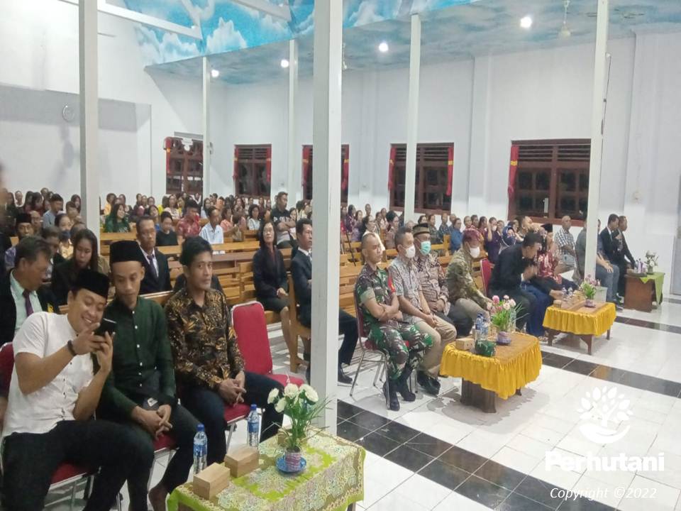 BANYUWANGI SELATAN, PERHUTANI (20/9/2022) | Upaya membangun komunikasi dengan pihak-pihak terkait terus diupayakan, Administratur Perhutani Kesatuan Pemangkuan Hutan (KPH) Banyuwangi Selatan Panca Putra Sihite hadir dalam rangka HUT Gereja Kristen Jawi Wetan (GKJW) Purwosari ke-84, Desa Buluagung, Kecamatan Siliragung, Kabupaten Banyuwangi, sekaligus momentum ini dimanfaatkan untuk koordinasi dengan jajaran Forum Komunikasi Pimpinan Kecamatan (Forkopimka) setempat, Minggu (18/9).
