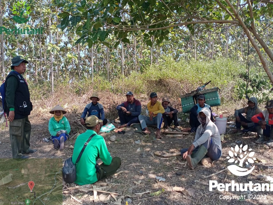 JATIROGO, PERHUTANI (31/07/2023) | Memasuki musim kemarau tahun ini Perum Perhutani Kesatuan Pemangkuan Hutan (KPH) Jatirogo, terus berupaya membekali wawasan dan memberikan ketrampilan bagi masyarakat desa hutan dan pesanggem, dalam hal penanganan bencana kebakaran jika sewaktu-waktu terjadi, serta mensosialisasikan tentang larangan melakukan pembakaran limbah sisa kegiatan pertanian maupun limbah pasca kegiatan tebangan, yang dilaksanakan di Petak 35C Resort Pemangkuan Hutan (RPH) Dikir, Bagian Kesatuan Pemangkuan Hutan (BKPH) Ngulahan, Tuban, Senin (31/07).