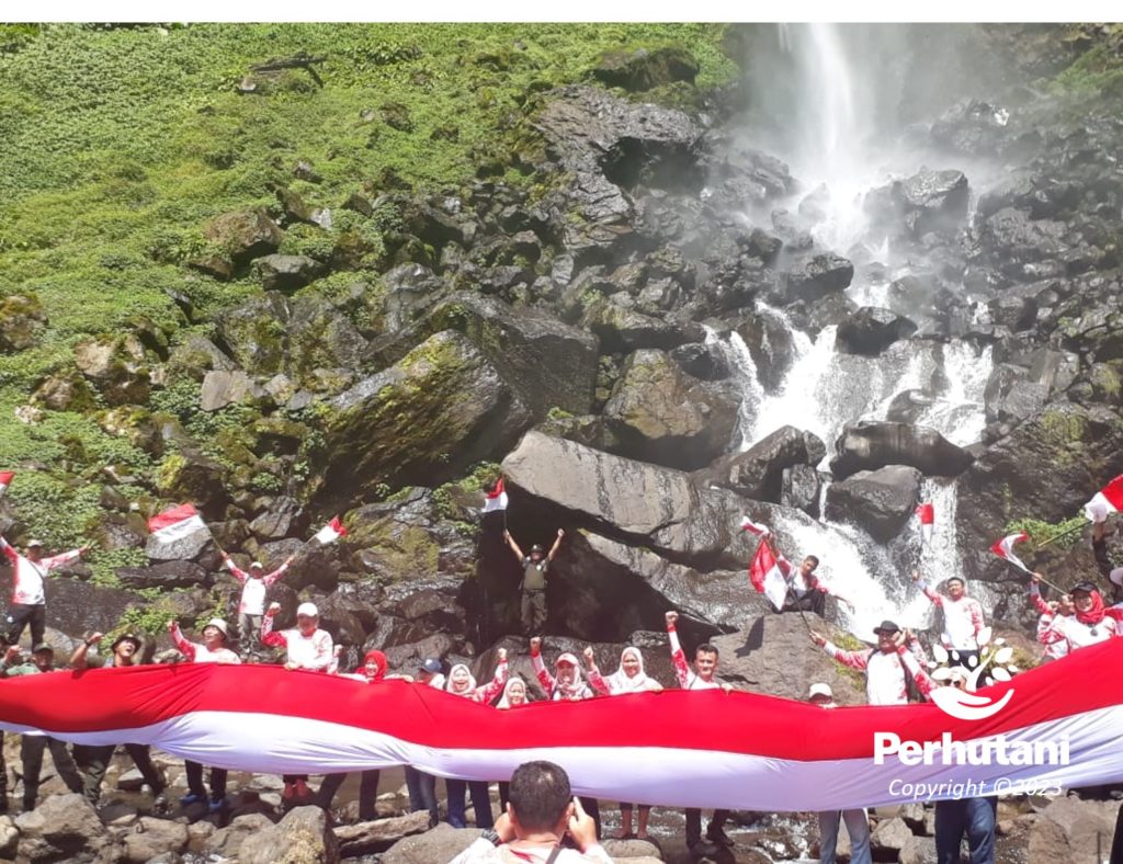 Perhutani Gelar Penanaman Bersama dan Pengibaran Bendera di Wisata Curug Cileat
