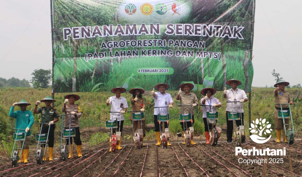 Dukung Program Pemerintah, Perhutani KPH Bojonegoro Tanam Serentak Agroforestry Pangan Berupa Padi Gogo