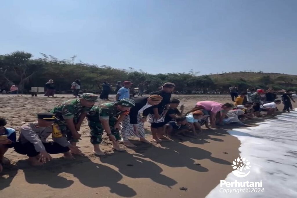 Wujudkan Sinergi dalam Pelestarian Satwa, Kepala Perhutani KPH Blitar dan Dandim 0808 Blitar Hadiri Pelepasan Tukik di Pantai Serit