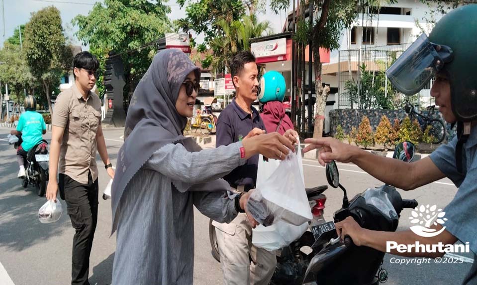 Perhutani Bagikan Makanan bagi Pengguna Jalan di Kota Blitar