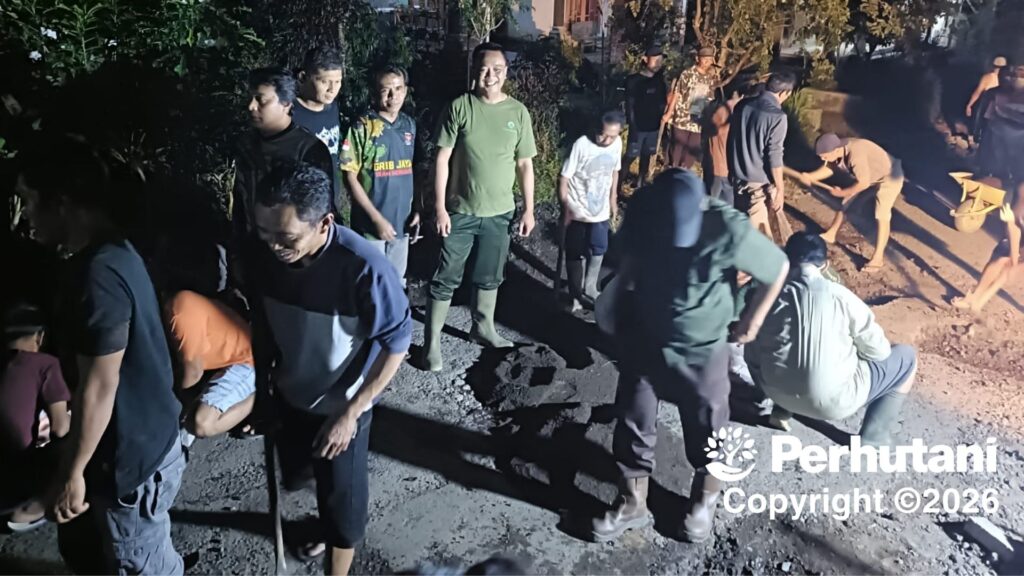 Perhutani Banyuwangi Barat Kompak Dengan GRIB Jaya Dan Masyarakat Perbaiki Jalan Di Songgon