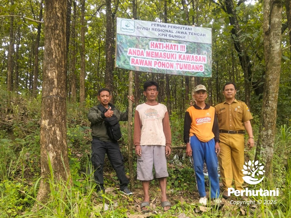 Perhutani KPH Gundih Lakukan Antisipasi Pohon Tumbang dan Longsor melalui Pemasangan Imbauan
