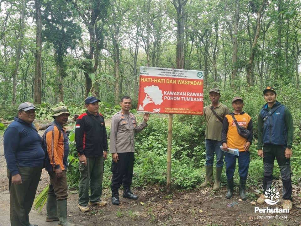 Perhutani KPH Madiun Jalin Sinergi dengan Polsek Sooko dalam Penebangan Pohon Rawan Tumbang di Musim Penghujan