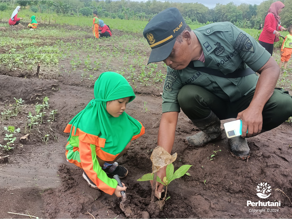 Perhutani KPH Madiun dan Siswa TK Among Putro Tanam Pohon untuk Peringati HMPI 2024