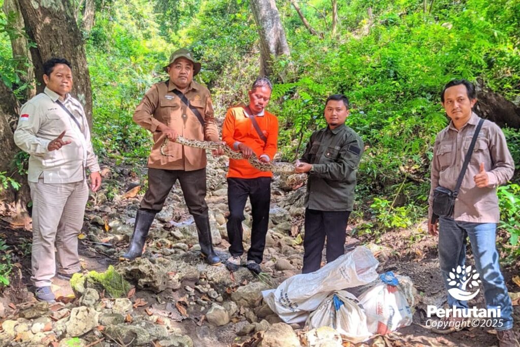 Perhutani KPH Madiun dan Resort Konservasi Wilayah 06 Ponorogo Lepasliarkan Tiga Sanca Bodo di Hutan BKPH Somoroto