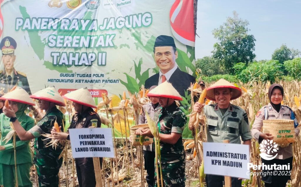 Perhutani KPH Madiun Panen Raya Jagung Serentak Tahap II Bersama Polres Magetan
