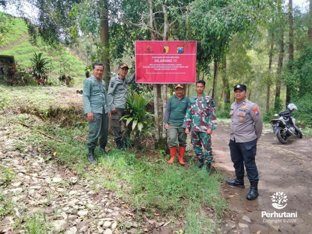 Perhutani KPH Malang Bersama TNI, Polri dan Masyarakat Pasang Papan Imbauan Larangan Penebangan Liar di Pujon