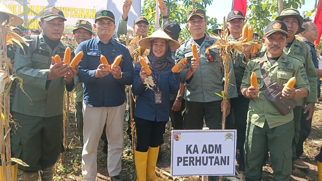 Dukung Ketahanan Pangan, Perhutani bersama Kodim 0810 Nganjuk dan Stakeholder Lainnya Lakukan Panen Jagung