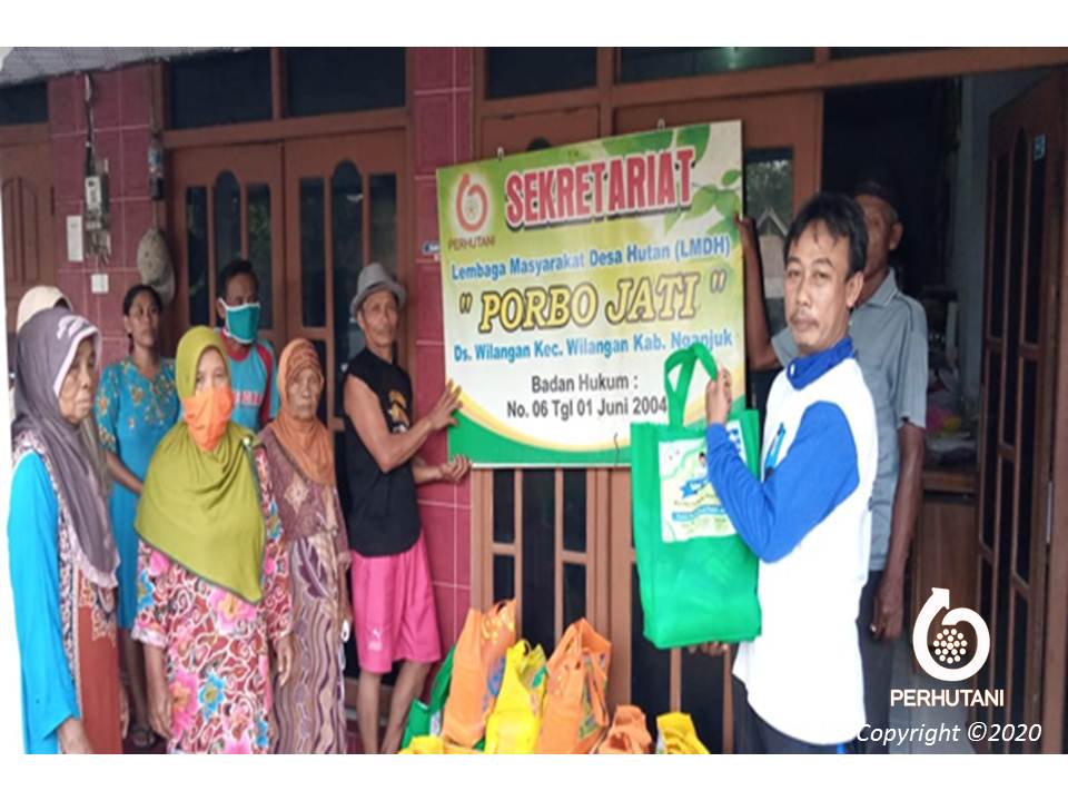 Perhutani bersama LMDH Purbojati Nganjuk Bagikan Paket Sembako Kepada Warga Kurang Mampu