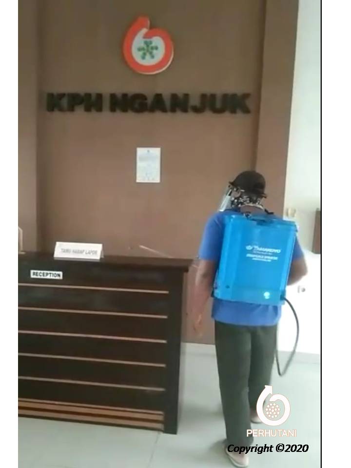Cegah Penyebaran Covid-19, Kantor Perhutani Nganjuk Disemprot Disinfektan