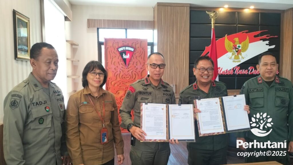 Perhutani Pasuruan Bersama Brimob Watukosek Teken PKS Perlindungan Hutan di Pasuruan