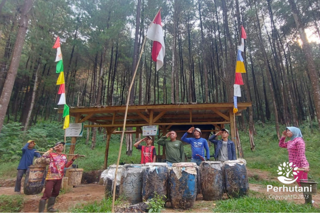 Perhutani Purwakarta Bersama Penyadap Getah Pinus Gelar Upacara HUT RI Ke 78 Di Tengah Hutan Pinus