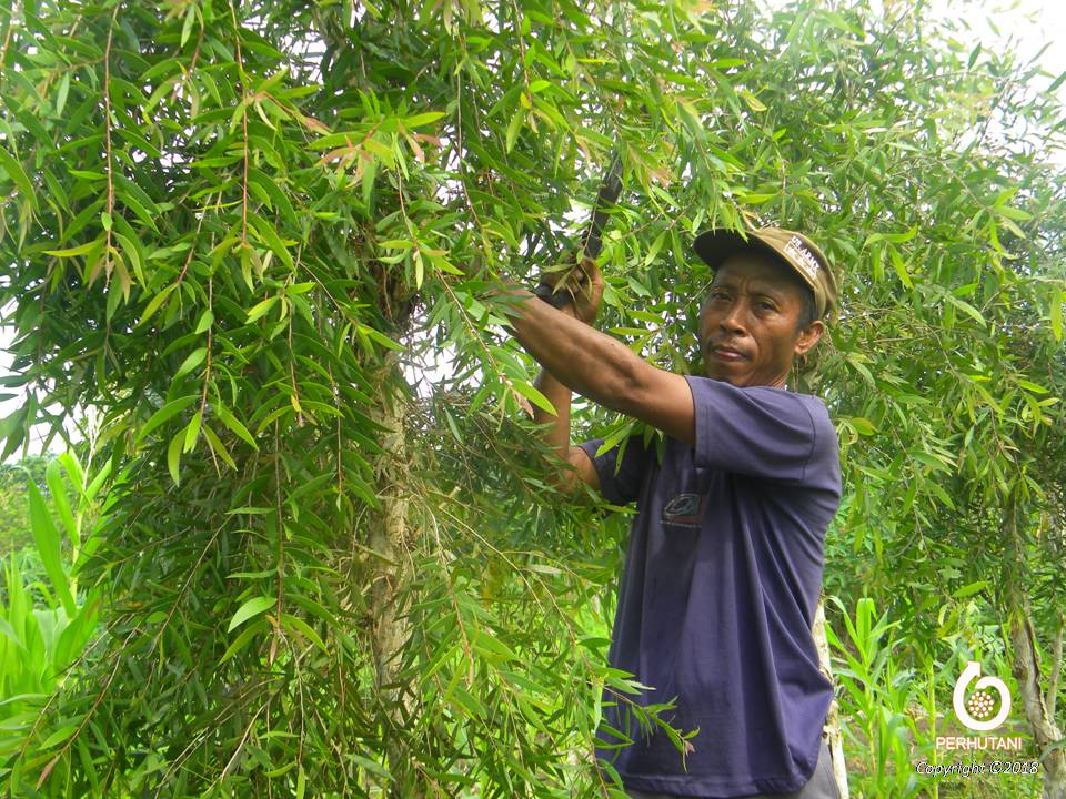 “Setiap 6 bulan sekali bisa memanen daun kayu putih sebagai tambahan pendapatan selain hasil panen palawija”. (Kom-PHT/Byb/Eko S).