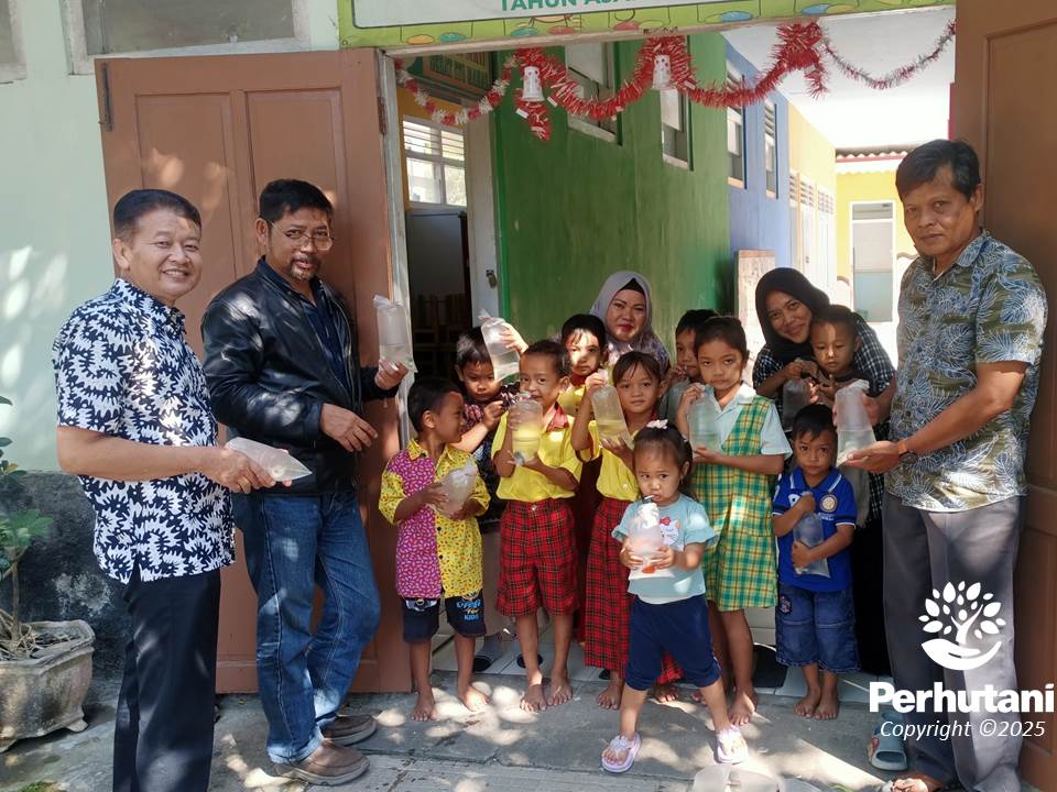 Tumbuhkan Kecintaan Ekosistem Perairan, Perhutani Padangan Ajak Anak TK. Tunas Rimba Rawat Ikan Hias