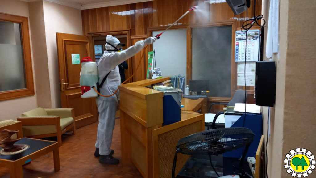 Penyemprotan ini dilakukan secara menyeluruh di ruangan kantor PT Inhutani III dan lingkungan sekitar kantor yang terletak di Gedung Manggala Wanabakti Blok IV Lantai 7 Wing C, Jalan Gatot Subroto Jakarta.