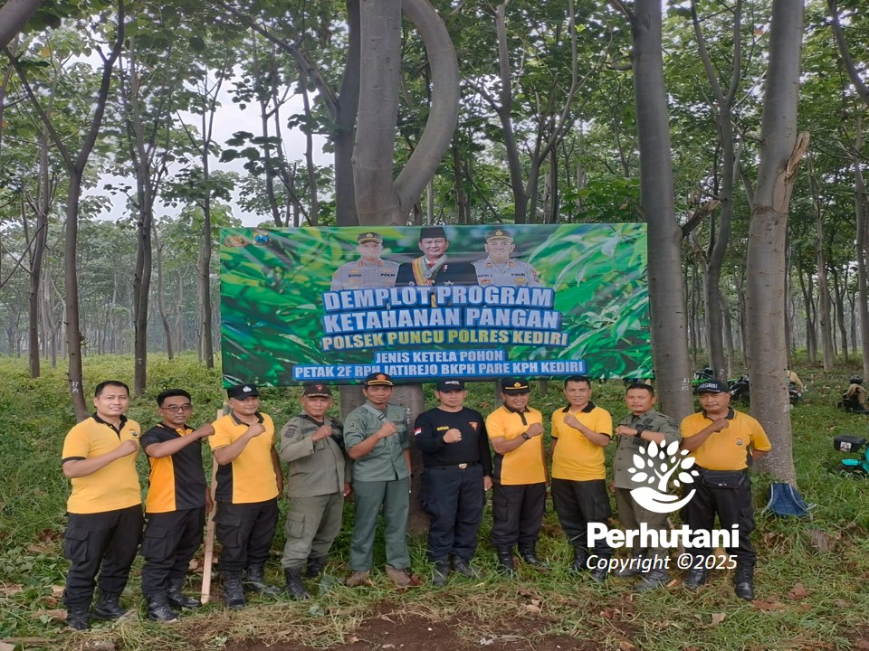 KEDIRI, PERHUTANI (16/01/2025) | Perum Perhutani Kesatuan Pemangkuan Hutan (KPH) Kediri menghadiri acara demplot budidaya ketela yang bekerja sama dengan Polsek Puncu, Polres Kediri. Kegiatan ini berlangsung di petak 2F Resort Pemangkuan Hutan (RPH) Jatirejo, Bagian Kesatuan Pemangkuan Hutan (BKPH) Pare, pada Kamis (16/01).