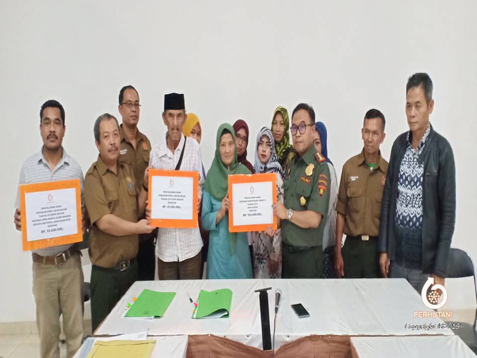 BOGOR, PERHUTANI (23/12/2019) | Perhutani Kesatuan Pemangkuan Hutan (KPH) Bogor menyerahkan bantuan pinjaman Program Kemitraan dan Bina Lingkungan (PKBL) tahap II tahun 2019 sebesar Rp 162.000.000 kepada 15 Mitra Binaan non LMDH di Aula Rapat Besar Perhutani KPH Bogor, Senin (23/12).