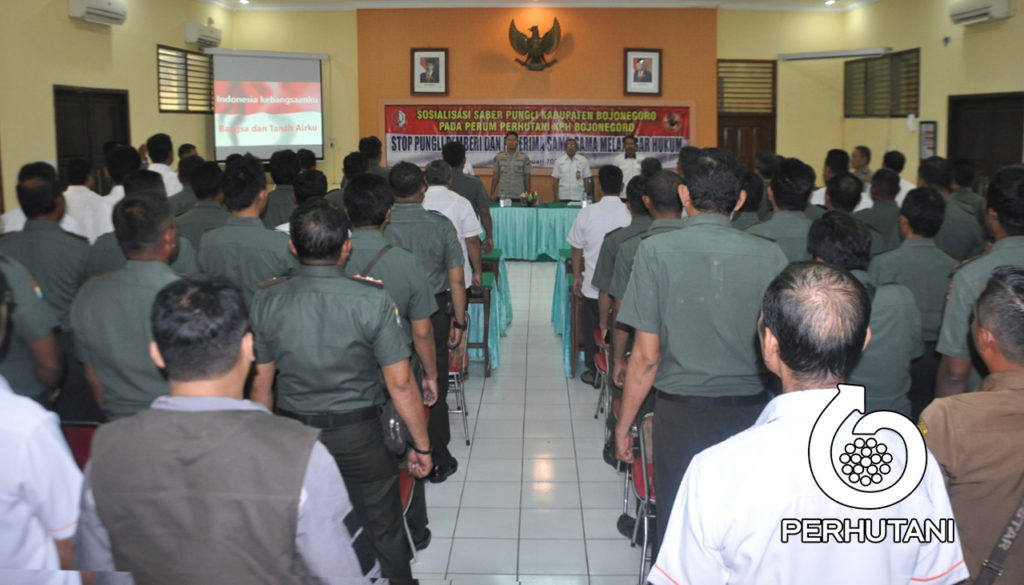 BOJONEGORO, PERHUTANI (16/01/2020) | Perhutani Kesatuan Pemangkuan Hutan (KPH) Bojonegoro menggandeng Kepolisian Resor (Polres) Bojonegoro mengelar sosialisasi Sapu Bersih Pungutan Liar (Saber Pungli) di wilayah Perhutani KPH Bojonegoro yang dilaksanakan di Aula KPH Bojonegoro pada Rabu (15/01).