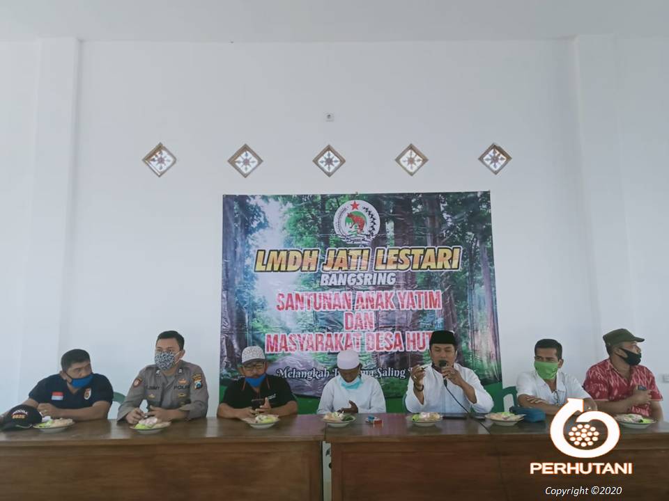 BANYUWANGI UTARA, PERHUTANI (27/07/2020) | Perhutani Kesatuan Pemangkuan Hutan (KPH) Banyuwangi Utara dan Lembaga Masyarakat Desa Hutan (LMDH) Jati Lestari membagikan sembako dan menyantuni anak yatim yang dilaksanakan di Balai Desa Bangsring Kecamatan Wongsorejo Kabupaten Banyuwangi, Senin (27/7).