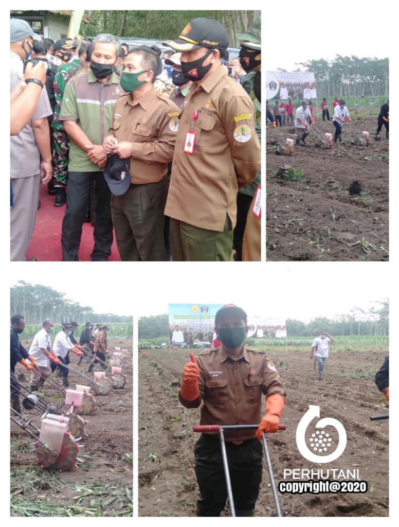 BLITAR, PERHUTANI (14/08/2020) | Penanaman perdana jagung di wilayah kawasan hutan Perhutani Kesatuan Pemangkuan Hutan (KPH) Blitar yang dilakukan di petak 40b wilayah Resort Pemangkuan Hutan (RPH) Rejotangan dihadiri oleh Menteri Pertanian Syahrul Yasin Limpo dalam rangka kunjungan kerjanya di Kabupaten Blitar pada Kamis (13/8).