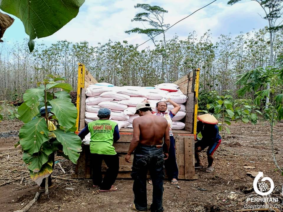 MADIUN, PERHUTANI (21/8/2020) | Perhutani Kesatuan Pemangkuan Hutan (KPH) Madiun bersama Dinas Pertanian Kabupaten Madiun dan Pengurus Perkumpulan Lembaga Masyarakat Desa Hutan (PLMDH) Madiun mendukung program Kedaulatan Pangan nasional dengan mengawal dan mengawasi penyaluran pupuk bersubsidi kepada LMDH di wilayah kerja Perhutani KPH Madiun, Sabtu (19/8).