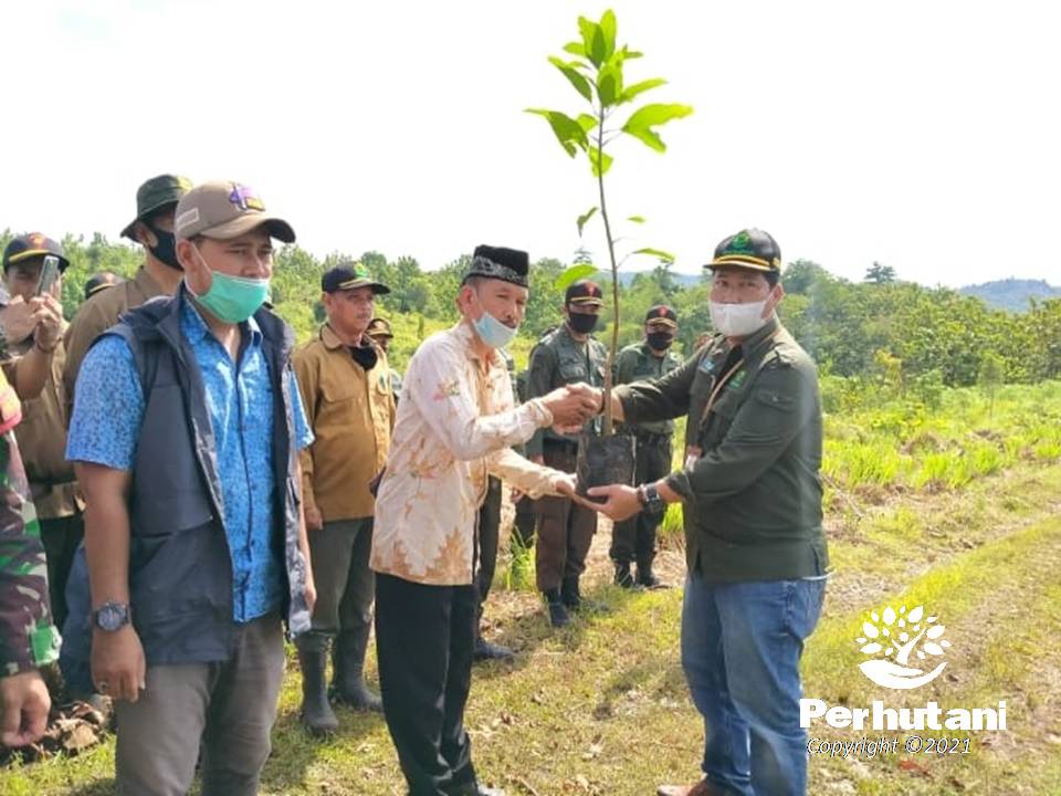 KUNINGAN, PERHUTANI (27/03/2021) | Dalam rangka menyambut hari ulang tahun (HUT) Perhutani ke-60 yang jatuh pada tanggal 29 Maret 2021, Manajemen dan jajaran Kesatuan Pemangkuan Hutan (KPH) Kuningan bersama Lembaga Masyarakat Desa Hutan (LMDH) Jati Lawang melaksanakan kegiatan penanaman pohon jenis Sengon, Durian, dan Pucuk Merah di kawasan hutan petak 44 A Resort Pemangkuan Hutan (RPH) Ambit, Bagian Kesatuan Pemangkuan Hutan (BKPH) Waled, wilayah administratif Desa Jatimulya, Kecamatan Cidahu, Kabupaten Kuningan pada Jum’at (26/03).