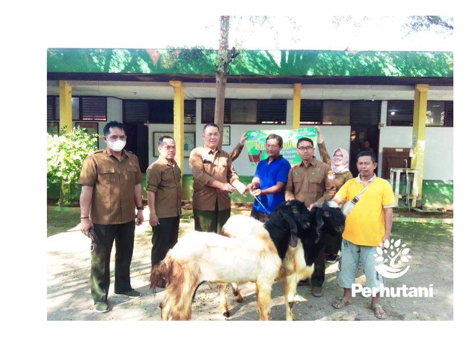MANTINGAN, PERHUTANI (12/07/2022) | Dalam rangka Hari Raya Idul Adha 1443 H Perhutani Kesatuan Pemangkuan Hutan (KPH) Mantingan berikan bantuan 3 ekor kambing hewan qurban ke Pondok Pesantren Nurul Musthofa, Yayasan Yatim Piatu Annaba dan masyarakat desa Mantingan, Selasa (12/07).
