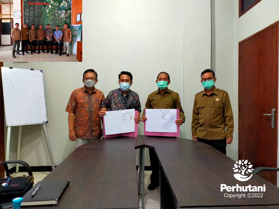 BANTEN, PERHUTANI (20/09/2022) | Perhutani Kesatuan Pemangkuan Hutan (KPH) Banten bersama Institut Pertanian Bogor (IPB) tanda tangani Perjanjian Kerja Sama (PKS) tentang Penangkaran dan Peredaran Monyet Ekor Panjang (Macaca Fascicularis) Di Pulau Tinjil, bertempat di Aula Kantor KPH Banten, Selasa (20/09).