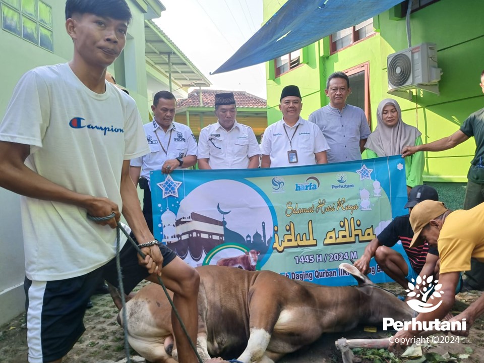 “Alhamdulillah, dalam rangka Hari Raya Idul Adha 1445 H, kita masih bisa berbagi dan menjadikan momentum ini sebagai bentuk kepedulian sosial bersama serta wujud syukur kepada Allah SWT dan solidaritas antarsesama. Hewan kurban ini merupakan sumbangsih dari seluruh karyawan Perhutani KPH Banten,” ungkapnya.