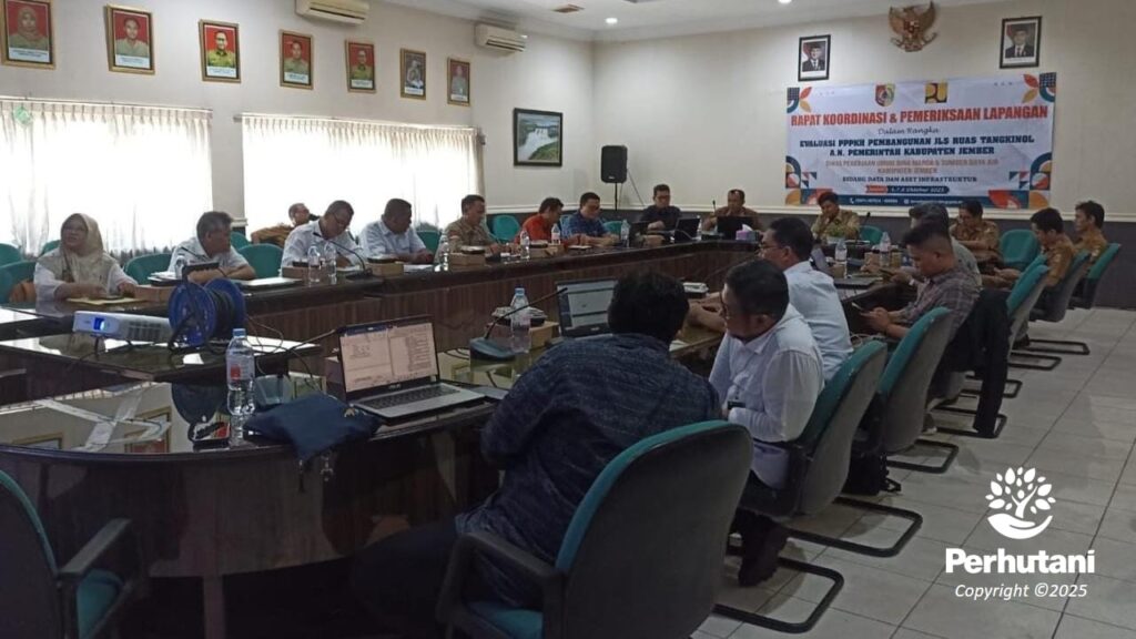 BANYUWANGI SELATAN, PERHUTANI (08/10/2025) | Perhutani Kesatuan Pemangkuan Hutan (KPH) Banyuwangi Selatan mendukung upaya percepatan pelaksanaan Proyek Strategis Nasional (PSN) Jalan Lintas Selatan (JLS) yang melintasi kawasan hutan di wilayah dalam rapat koordinasi dan pemeriksaan lapangan (Riklap) di kantor Dinas PU Bina Marga dan Sumber Daya Air Kabupaten Jember, Senin–Rabu (6-8/10).